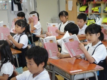 「みいつけた」という勉強をしています。全員で朗読をしてみました。いい姿勢ではっきりと読めました。随分、上手に読めるようになりましたね。