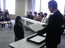 2月21日に感性のびのび俳句大会の表彰式がありました。本校からは、見事、特選に選ばれた中川璃音さんが出席し、教育部長より表彰状をいただきました。本日、校長室へ報告に来てくれました。