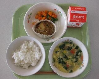 今日の給食は、白山めぐみん給食でした。今日のメニューは、豆腐ハンバーグ、にんじんグラッセ、コーンかき玉スープです。今回の食材は「にんじん」です。グラッセとスープに使われています。色が濃くて、甘みの強いにんじんでした。豆腐ハンバーグには、かた豆腐が使われています。どれもおいしかったです。