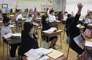 6年生の授業。学級活動では今月の生活目標について、学級として何を頑張るかを話し合っていました。