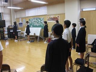 後期最初の鳥越っ子集会です。各委員会から頑張りたいことなどが伝えられました。