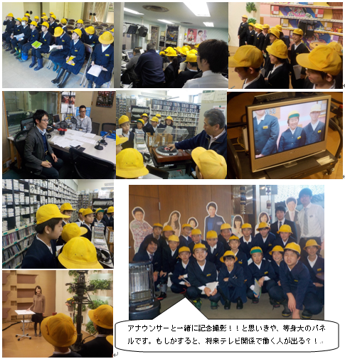 1月26日(木)、久しぶりの好天に恵まれる中、MRO北陸放送局に見学に行きました。社会科で情報について学んでいる最中ですが、自分の目で見て耳で聴く「現地現物」が何より大切です。ラジオの生放送を直接見てアナウンサーと話をさせてもらったり、テレビの放送スタジオに入って番組の本物のセットを見たりと、学校にいては感じられないことをたくさん学ぶことができました。ラジオでは、「鳥越小学校の5年生のみなさんが来てくれていま~す」と紹介してくれるという、ラッキーなおまけ付きでした。