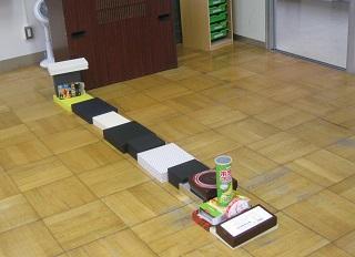 1年生の算数。「かたちあそび」の単元のはじめの授業です。立体図形に親しむために空き箱などを使って乗り物や建物などを作りました。