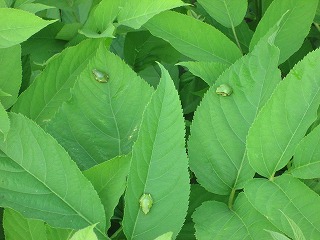 アマガエルが三ひき(梅雨の一コマ)