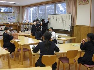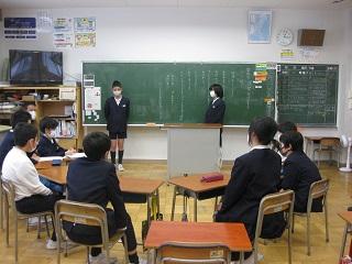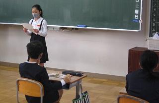 今週は読書週間です。図書委員がこの期間の取組について各学級に伝えました。