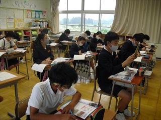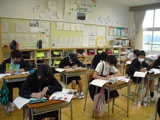 6年生の社会の授業。震災復興の願いを実現する政治について学習していました。全国学力調査・学習状況調査のあとの授業でしたが、みんな集中して頑張っていました。