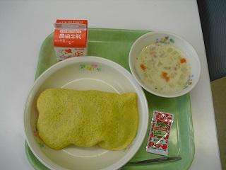 今日の給食は、オムライス、ミルクスープでした。今日もおいしかったです。