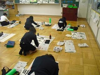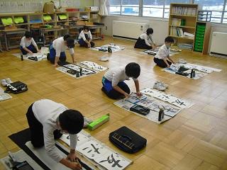 書き初めの様子です。1・2年生は硬筆、3年生以上は毛筆です。