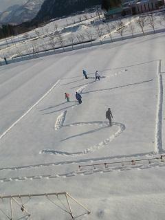 6年生がみんなで協力して今年の干支を書きました。3階の教室からはどう動けばよいのかの指示が出されています。