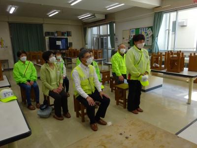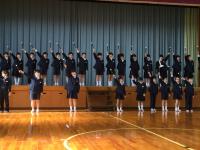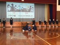今年度の安全パトロール隊の紹介式を行いました。日頃から皆さんの安全を見守ってくださっている地域の方々に日々感謝し,登下校の際に見かけたら,元気にあいさつをしましょう。