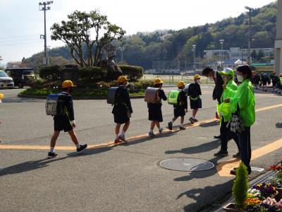 紹介式の後は,地区ごとに集まり,集団下校訓練を実施しました。下級生に優しく声掛けをしたり,リードしたりする高学年の皆さんの姿はとても立派で頼もしかったです。