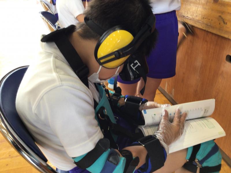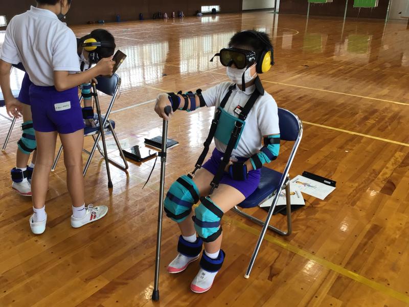 4年生は6月16日(木)に社会福祉協議会の方を招いて,高齢者疑似体験を行いました。子どもたちは重りやゴーグルなどを付けて動く活動を通して,歩きにくさや細かな作業のしにくさを体感していました。子どもたちの振り返りには,「お年寄りの大変さが分かったから,自分ができることはサポートしたい」と書いている児童が多くいました。お年寄りの気持ちに寄り添った行動ができる4年生になってほしいと思います。