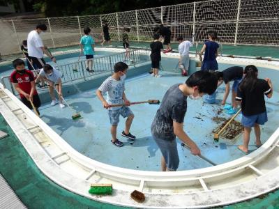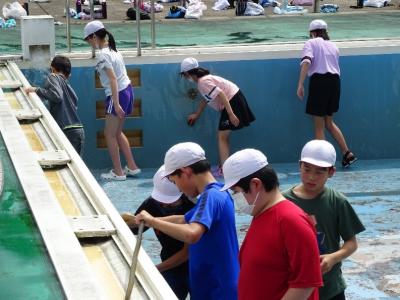 3年生から6年生が,夏のプール学習に向けてプール清掃を行いました。更衣室やプールの掃除,プールの周りの草むしりを行い,大変きれいになりました。黙々と真剣に掃除に取り組む姿はとても素晴らしく,子どもたちも自分たちの頑張りに満足感をもつことができました。気持ちよく水泳学習が始められそうです。