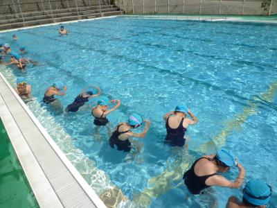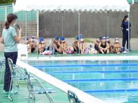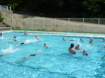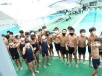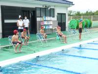 7月6日(水)に,「ノトアフィットネスガレージ」から講師を招き,簡単な泳ぎ方や息継ぎの仕方などを教えていただきました。水の慣れ具合によって2つのコースに分かれ,教えていただきました。