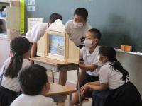 1年生が,来年度入学する年長児さんをお迎えする会を行いました。この日に向けて1年生は,準備や練習をしてきました。当日は,年長児さんによる授業見学,1年生によるなわとび披露や映像での学校紹介等,はりきって行いました。新1年生が入学するのを楽しみに待っています。