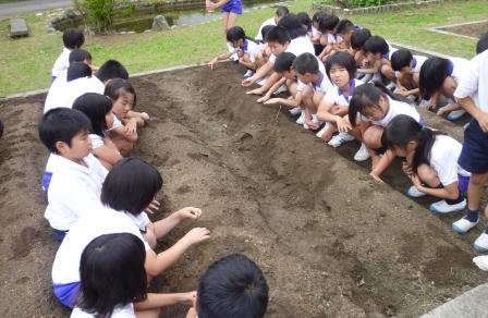 6月21日(木)に大豆の種まきを行いました。種を観察していると「大豆の種は 大豆なんや」「豆から豆ができるのがおもしろい」などの感想が聞かれました。子どもたちはどんな風に育つのか興味津々でした。