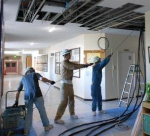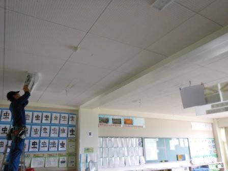 夏休みに入り,鳥屋小学校のトイレ,教室照明,空調の3つの工事が本格的に始まりました。