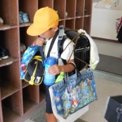 大きな荷物を背負って,夏空の下,元気に家路につきました。