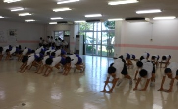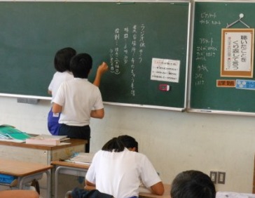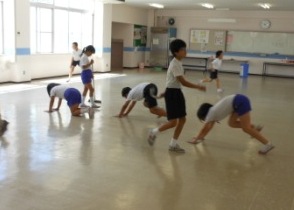 今日は,昼休みに,地区子ども会を開いて,ラジオ体操の確認や危険な場所の確認をしました。そのあと,全校児童でラジオ体操第2の練習をしました。