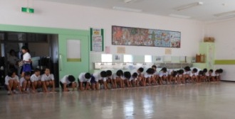 今日は,登校日,サマースクール②でした。この夏休み2回目の宿題提出日です。各学級で,チェックをしていました。また,前回の宿題提出で間違えの多かった問題の解説なども行われました。校内で使えるトイレが1か所しかなく,低学年と高学年の時間差登校でした。真っ黒に日焼けした元気な顔が見られて一安心です。トイレの工事も順調です。