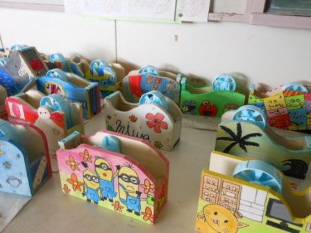 高学年の朗会には,1学期の図工や総合学習の成果が展示されています。