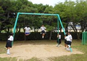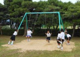 老朽化で付け替え工事をしていたブランコが完成しました。