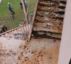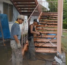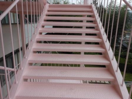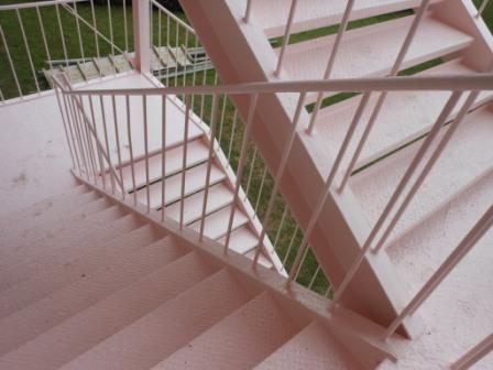 図書館側の非常階段が腐食で汚れていましたが,さび落とし,ペンキ塗りなどしてきれいになりました。普段は使わない場所ですが,明るくなって,気持ちがいいです。