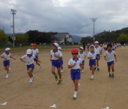 朝,少し肌寒さを感じましたが,絶好のマラソン日和となりました。全校マラソン記録会がありました。開会式,準備運動の後,4年生→3年生→2年生→1年生→5年生→6年生の順でスタートしました。コース沿道には,100名を超える地域の方,家族の応援があり,練習以上の力走が見られました。5種目で新記録が出ました。応援,ありがとうございました。