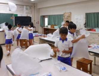 朝,校舎の周りに草や枝の吹きだまりができていました。台風18号による暴風も短時間で過ぎ,大きな被害がなくて何よりでした。台風一過,全校でマラソン練習をしました。来週の記録会に向けて気合が入ってきたようです。将来,オリンピック選手が誕生するかも。4年生は,理科の『空気』の勉強で大きな風船作りや空気鉄砲で楽しいひと時を過ごしました。将来,ノーベル賞を受賞するような研究者が誕生するかも。