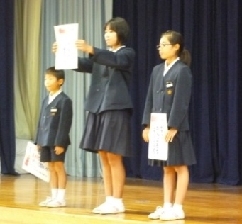 後期児童会の認証式がありました。各委員長からは,力強い抱負が述べられました。半年間,よろしくお願いします。児童集会では,代表委員からの今月の目標の発表,5年生による群読が行われました。