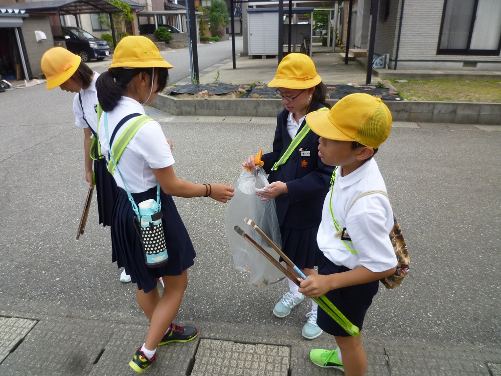 6年生の環境学習の取り組みの一つとして地域のゴミ拾いに行ってきました。