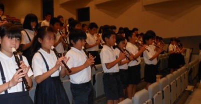 鳥屋小,鹿島小,鹿西小の3校の4年生がラピア鹿島に集い,町音楽会が開かれました。