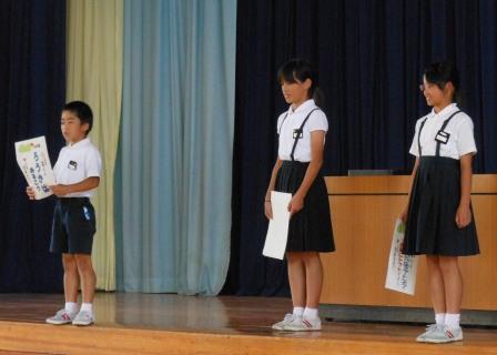 次に,代表委員による今月の生活目標,夏服の注意点の発表がありました。