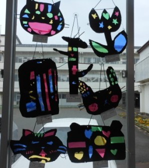 低学年棟の廊下には,1,2年生の図工作品が展示されています。