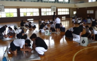 4年生以上が,①握力 ②上体起こし ③長座体前屈 ④反復横とび ⑤50M走 ⑥立ち幅跳び ⑦ソフトボール投げ ⑧シャトルラン の測定をしました。