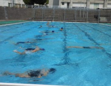 30度近くの蒸し暑い日が続きます。プールの水温も28度を超えています。
