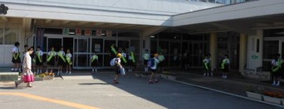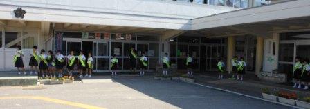 6年生から順番に児童玄関前に立って,大きな声であいさつ運動をしています。