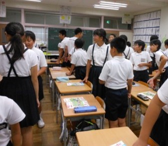 2学期がスタートしました。始業式では,4人の代表が夏休みにがんばったことや2学期にがんばりたいことを発表してくれました。「夏休みは,宿題や自学ノートにがんばりました!お手伝いをがんばりました!」「2学期は,器械運動にがんばります!」など,頼もしい言葉が聞かれました。