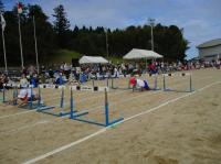 競遊種目では,1・2年生は,「だんご3兄弟」,3・4年生は「走って投げて!玉入れリレー」を行いました。低学年は,一緒に走る友達と協力しながら最後まで走り切りました。中学年は,カゴの場所まではしり,ねらいを定めて玉を投げていました。