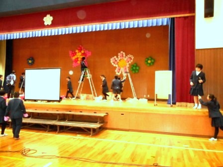 明日は,6年生を送る会です。各学年,リハーサルをしました。ばっちりの学年もありました。午後からは,5年生が会場準備も行いました。心をこめて準備をする5年生,頼もしく思えました。