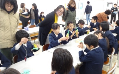 土曜授業では,高学年が非行被害防止教室として鳥屋駐在所長から防犯についてのお話を聞きました。中学年は,「わくわく電気実験&空気砲」と題して,北陸電力の方が講師となって,楽しい実験をさせてくださいました。