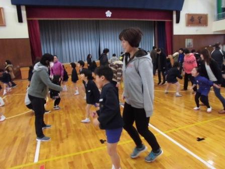 2限目,3限目は,低学年PTAテーマ別懇談会として,親子で体操をしました。宮西先生の指導のもと,心も体も温まる体操やゲームをしました。授業のときとは違う,甘えん坊の顔を見せてくれ,ほほえましい活動となりました。