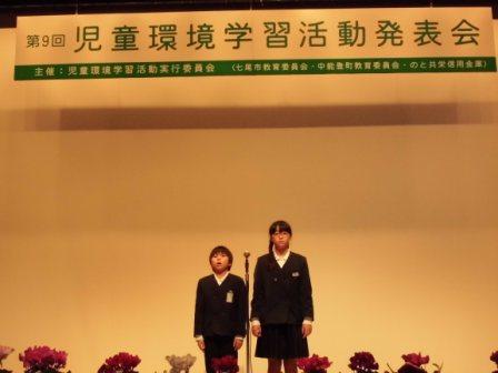 七尾・鹿島地区の小学校6年生による環境教育の取り組みについての発表会がありました。