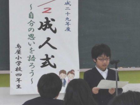 2月3日の土曜授業では,4年生が1/2成人式を行いました。また,2,3年生はタブレットやパソコンを使って学習をしました。5,6年生は活用力を鍛える学習をしました。合間に,校長による家庭教育のすすめの講話もありました。