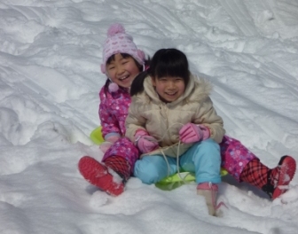 大雪の除雪で大変でしたが,子どもたちにとって雪はかっこうの遊び道具。松ぼっくり広場で,そり遊び,雪だるま作りを楽しみました。