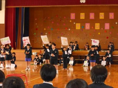 2月23日(金)午後,6年生を送る会が開催されました。1年生から5年生までが,いろいろとお世話になった6年生に喜んでもらおうと趣向をこらした出し物を披露しました。郡読,ゲーム,クイズ,英語活動,寸劇,マーチング・・・どれもインパクトのある,レベルの高いものでした。また,先生方もキレキレのバブリーダンスを披露しました。6年生からは,歌とダンスのお返しがありました。6年生にとっても,下級生にとっても思い出に残る行事となりました。会の企画・運営,後片付けにがんばった5年生には,次の際上級生としての自覚と責任が芽生えていました。