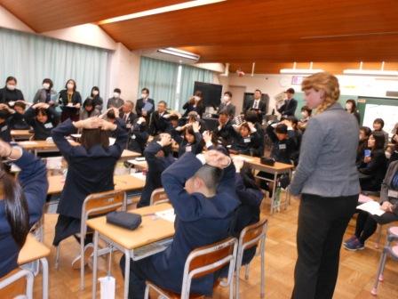 愛知県立大学の池田 周先生をお招きして,5年2組の児童に外国語活動の授業をしてもらいました。来年度から使用される英語の新教材を使っての授業でした。繰り返し発音させることや発音のしくみを説明してあげること,アルファベットに関心を持たせることなど,指導のポイントを教えていただきました。町内の先生方にも大変参考となる御話しでした。