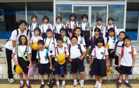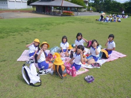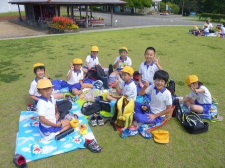 みんなで歩くときのきまりや楽しく遊んだり食べたりするときのルールなどを確認して出発しました。1・2年生とって,予想以上に長い距離だったらしく,途中「まだかな~」という声もいくつか聞かれましたが,全員ゴールの運動公園まで行くことができました。