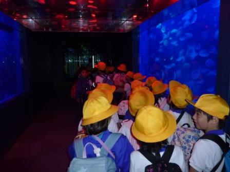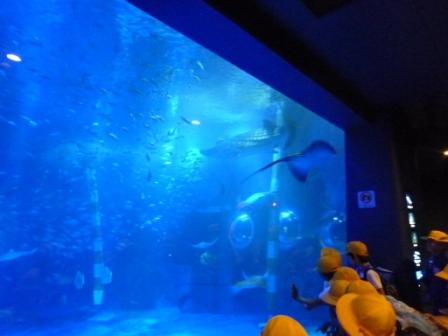 ジンベイザメは大きくて、みんな大興奮でした。クラゲのところでは、いろいろな色で光っていてとってもきれいでした。