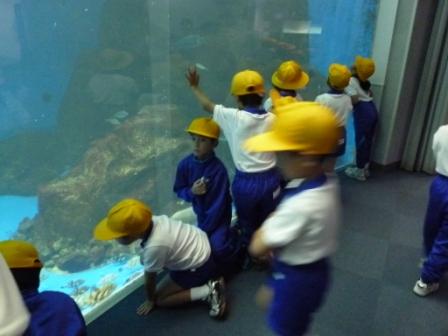 一年生は、能登島水族館に初めてのバス遠足に行ってきました。バスの中でも、みんなわくわくしていました。